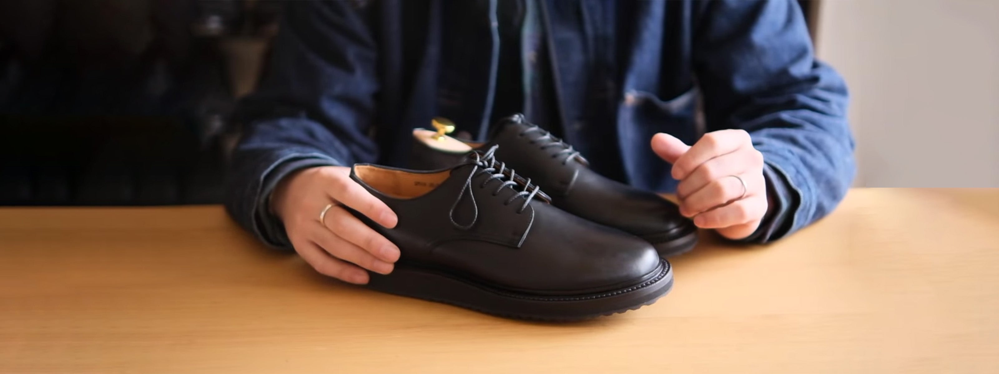 最もシンプルで定番とされている外羽根プレーントゥ。この普遍的デザインにおいて、blueoverとしての美しさと機能を追求。思い描くふさわしい姿に納得するまで、幾度も試作を重ねたどり着いた。何十年後も受け継がれることを想像しながらこの靴の姿は生まれた。