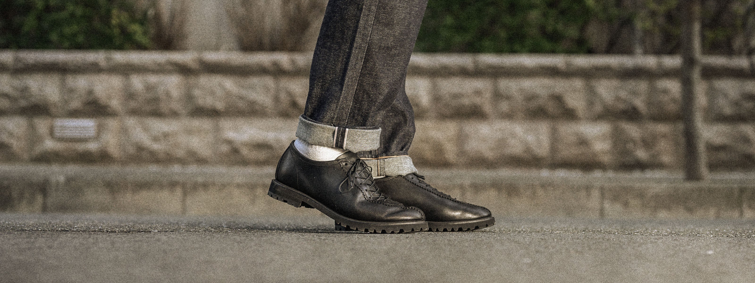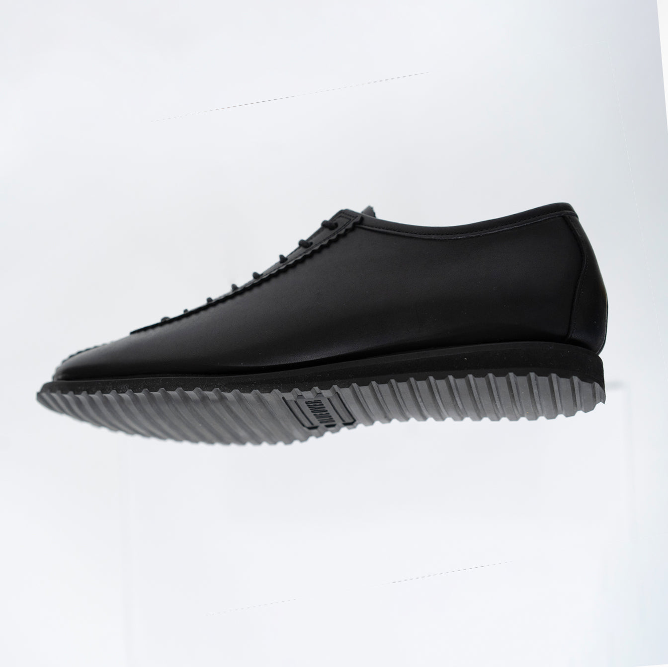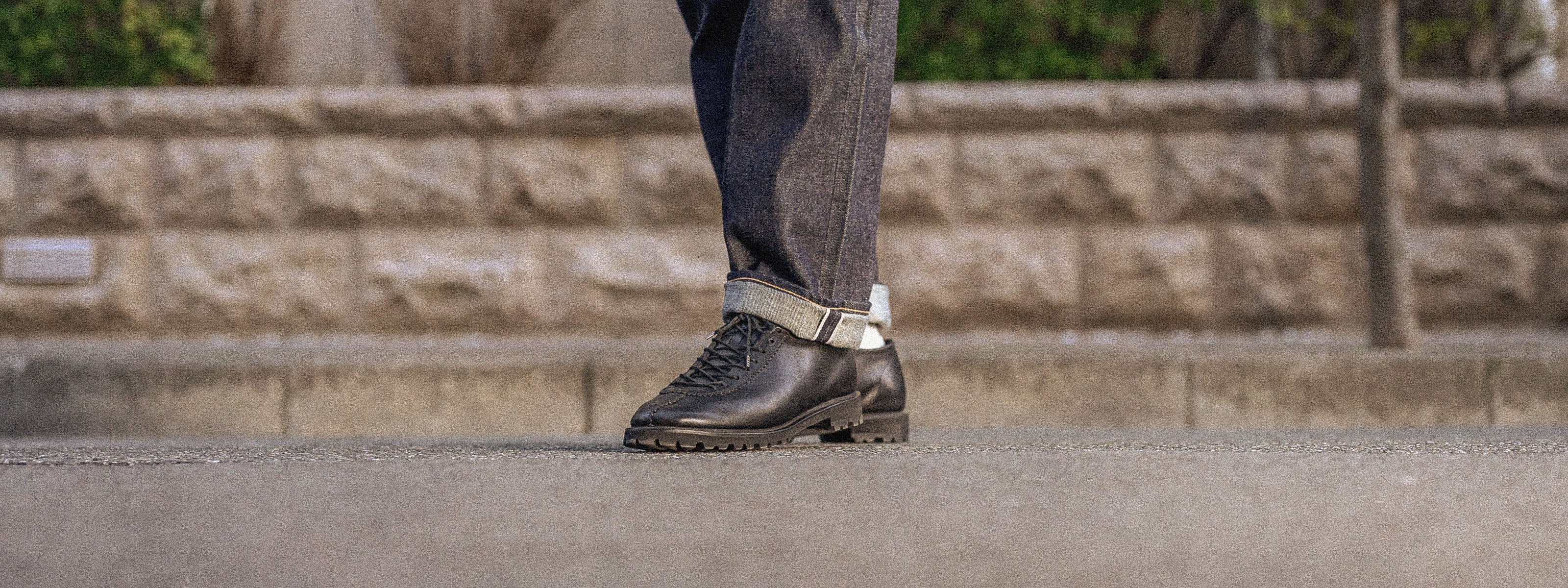 The BARRACUDA, a modern reconstruction of 1970s sports shoes. It features a refined silhouette, while the thick, high-quality oil leather from a long-established tannery creates a vintage feel. The meticulous attention to detail, such as the pinking, and the streamlined design that eliminates leather embody the brand's philosophy. Employing a gentleman's shoe last (foot shape), it is versatile enough for both casual and business casual styles. The McKay construction, which allows for sole replacement, makes this a pair of shoes you can use that will last for many years.