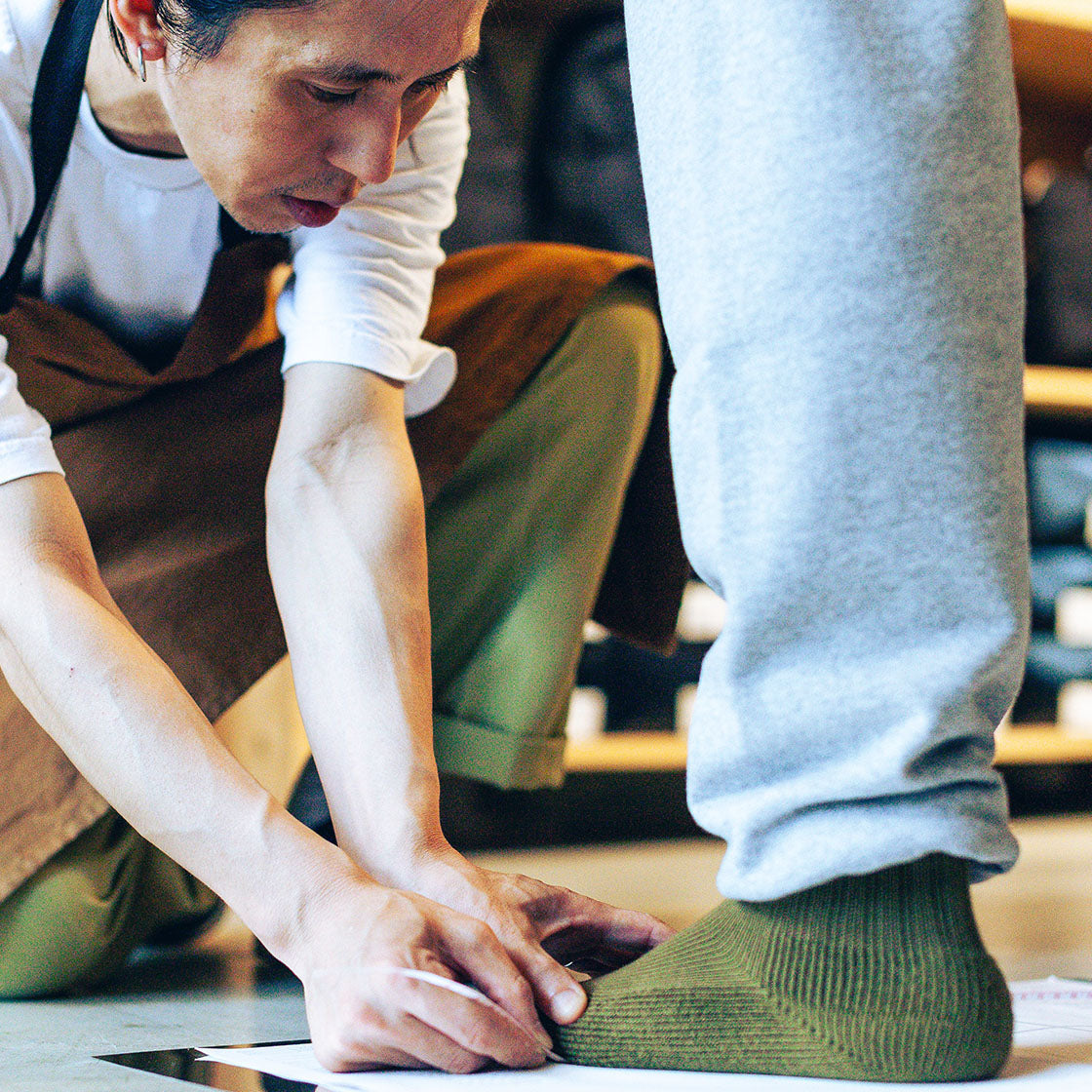 足にお困りのお客様には、シューフィッター資格を持つスタッフが対応いたします。もし足の計測をご希望であれば店頭にてお声がけください。
