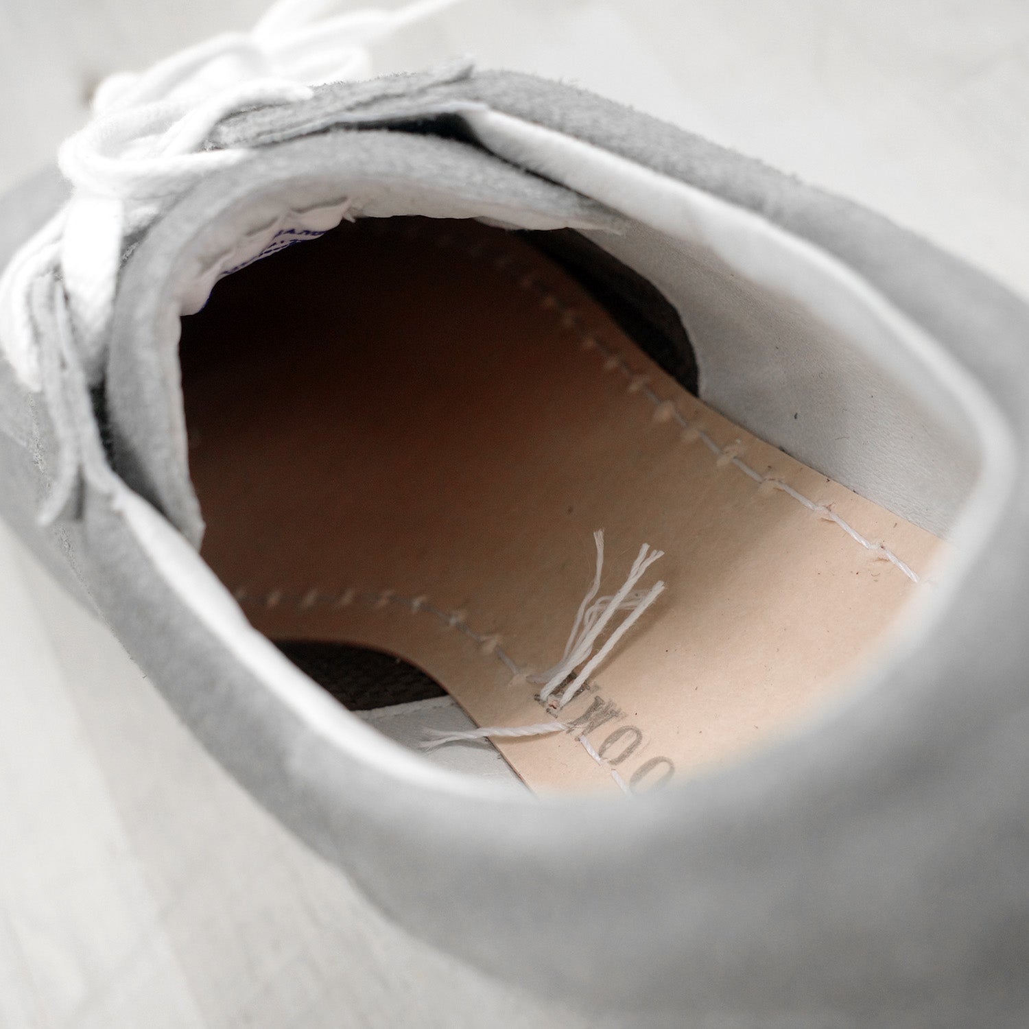 定番モデル「マイキー」をマッケイ仕様にアップデート。デザインはそのままに、通常のマイキーにおいて破損リスクがあるソールの交換が容易となっている。マッケイ(縫製)をかけている部分の「アイナカ」が残るかぎりは交換可能。ソールユニットに革靴のようなコバを設けウェルトピースを装着した落ち着きあるモデル。
