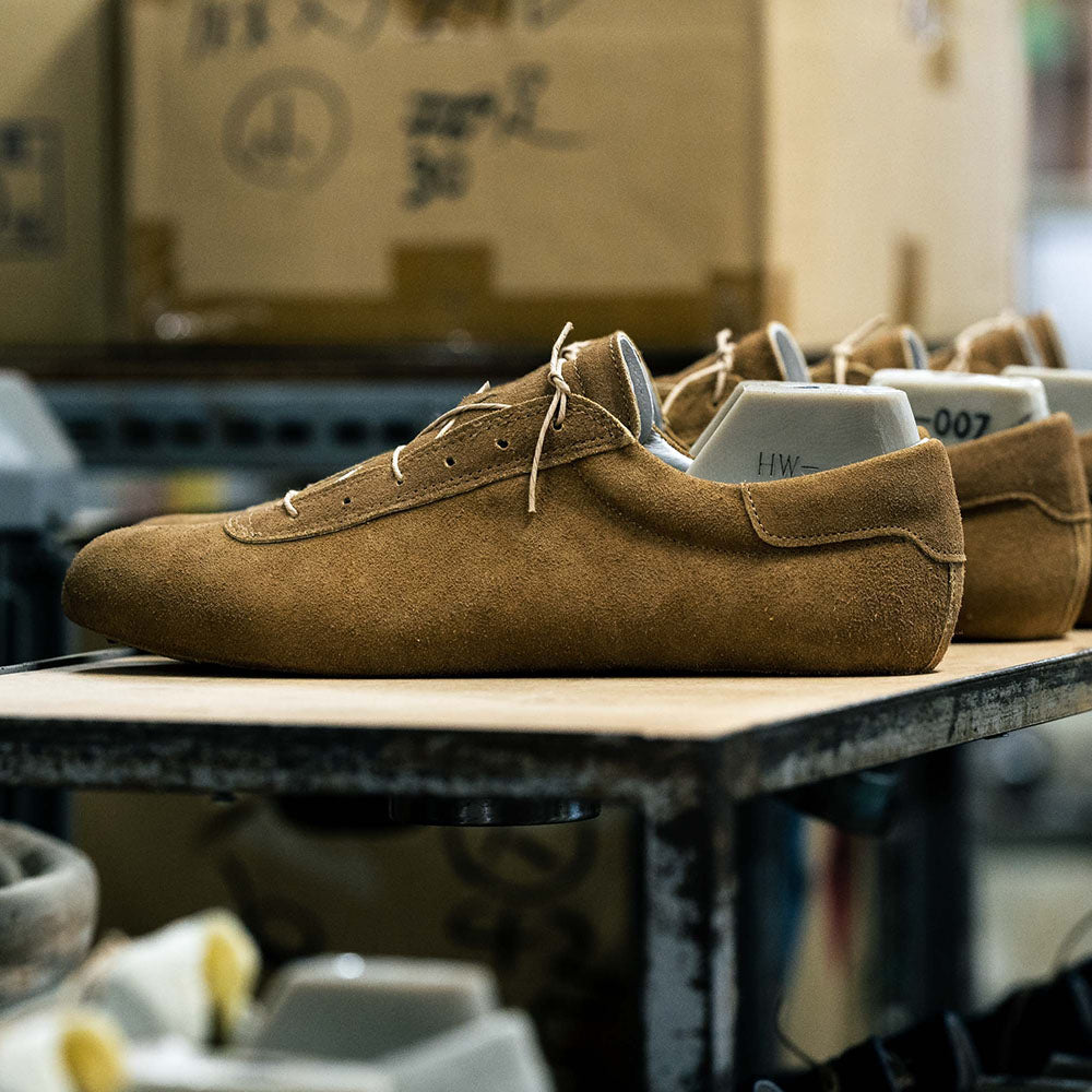 私たちは可能な限り、素材、加工、生産を国内で行います。それは日本の靴づくりを継続させるためと考えているからです。小規模ながら、地域の作り手の方たちと共に、継続的な靴づくりのサイクルを続けていきます。