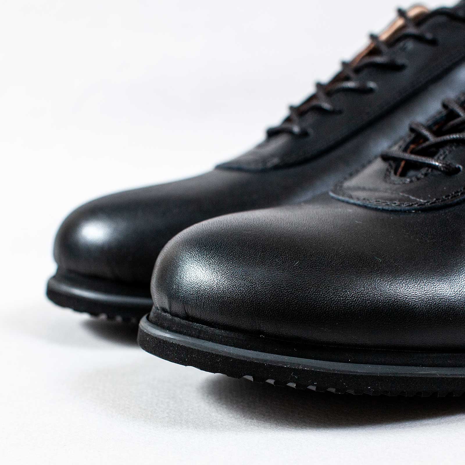 运动鞋非常适合穿脱。最后的设计有男鞋的轮廓,但合脚度恰到好处,合脚度调整到与同品牌的运动鞋型号相同。 McKay 的制造方法和独特设计的鞋底单元营造出轻盈的感觉。鞋面采用与老牌制革厂合作开发的半永久性防水皮革制成,保持了皮革的原始外观。