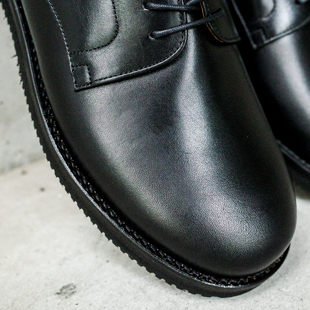 普段遣いできるプレーントゥの短靴を探してました。レザーが良いけど正直ケアは面倒で、悪天候を気にするのは億劫だなと。