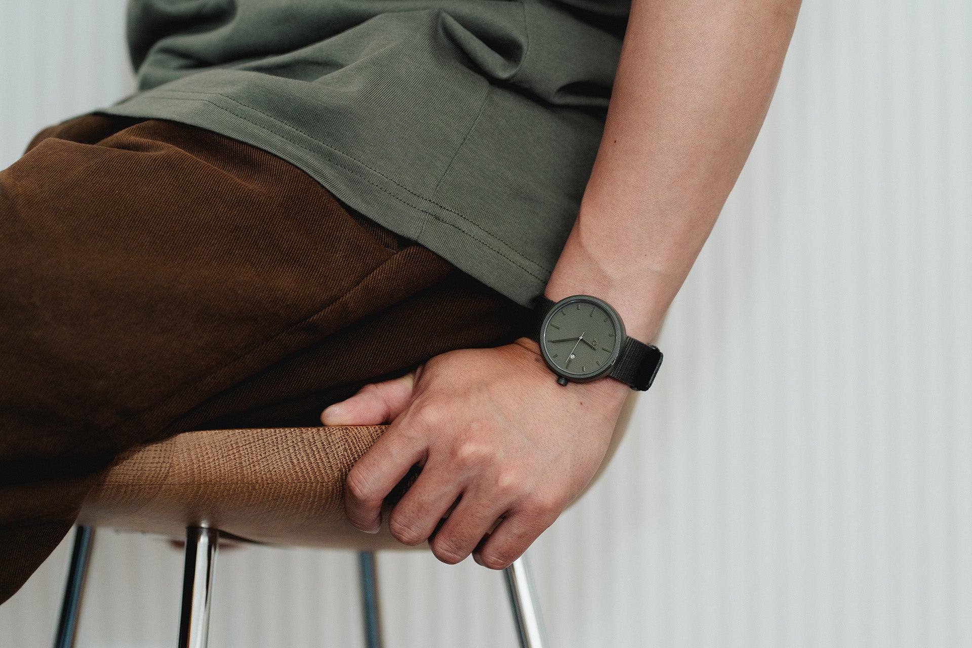 おもちゃから生まれた腕時計「YOT WATCH」。ケースにおもちゃを原料にしたリサイクル樹脂を使用。デイト機能付き。本体の裏側のネジを開ければ、好きなカラーのベルト(別売り)にカスタマイズ可能。